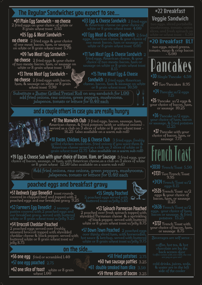 The menu also highlights simple, flavorful sandwiches served on locally sourced breads and hearty sides such as home fries or chips, enhancing that feeling of homemade goodness. Drinks and accompaniments complement the food’s familiar yet carefully crafted nature, making each visit an easy, comfortable dining experience.